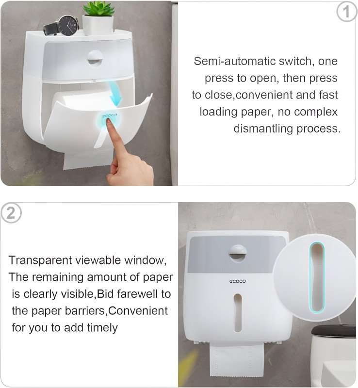 Keep your bathroom organized and your tissues dry with the Wall-Mounted Waterproof Tissue Box. This sleek and modern dispenser is designed to protect your paper rolls from water splashes and dust while providing a convenient storage solution. Its minimalist aesthetic and functional design make it a perfect addition to any contemporary bathroom or kitchen, ensuring your essentials are always clean and within reach.