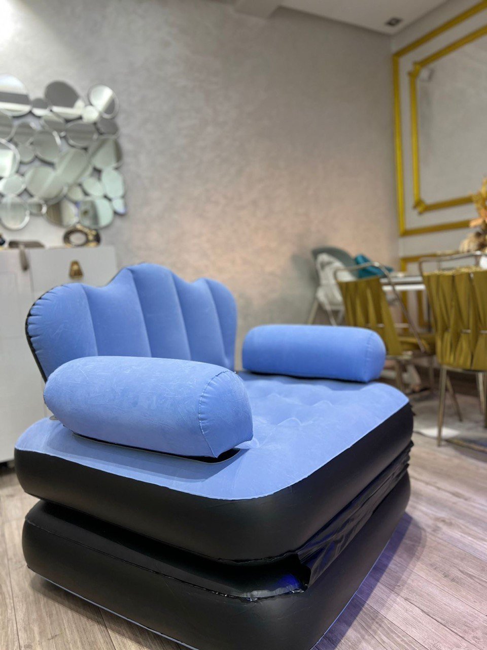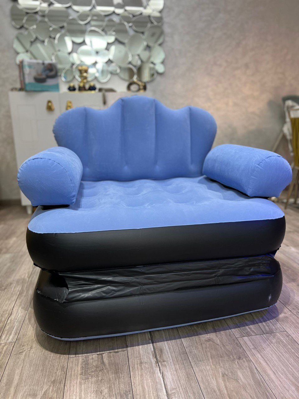 Experience the ultimate comfort and flexibility with this multifunctional 2-in-1 inflatable sofa. Designed to seamlessly transition from a stylish armchair to a relaxing daybed, this piece of furniture is the perfect solution for modern living, unexpected guests, or outdoor adventures.