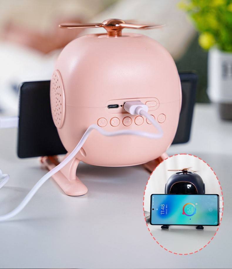 Bring a touch of modern innovation and whimsical design to your space with this 4-in-1 Helicopter Multifunctional Device. This creative gadget is not just a desktop ornament but a powerhouse of utility, combining an audio player, a timekeeper, and a mood enhancer in one sleek aviation-inspired frame. Perfect for bedside tables or office desks, it transforms your environment into a productive and relaxing sanctuary.
