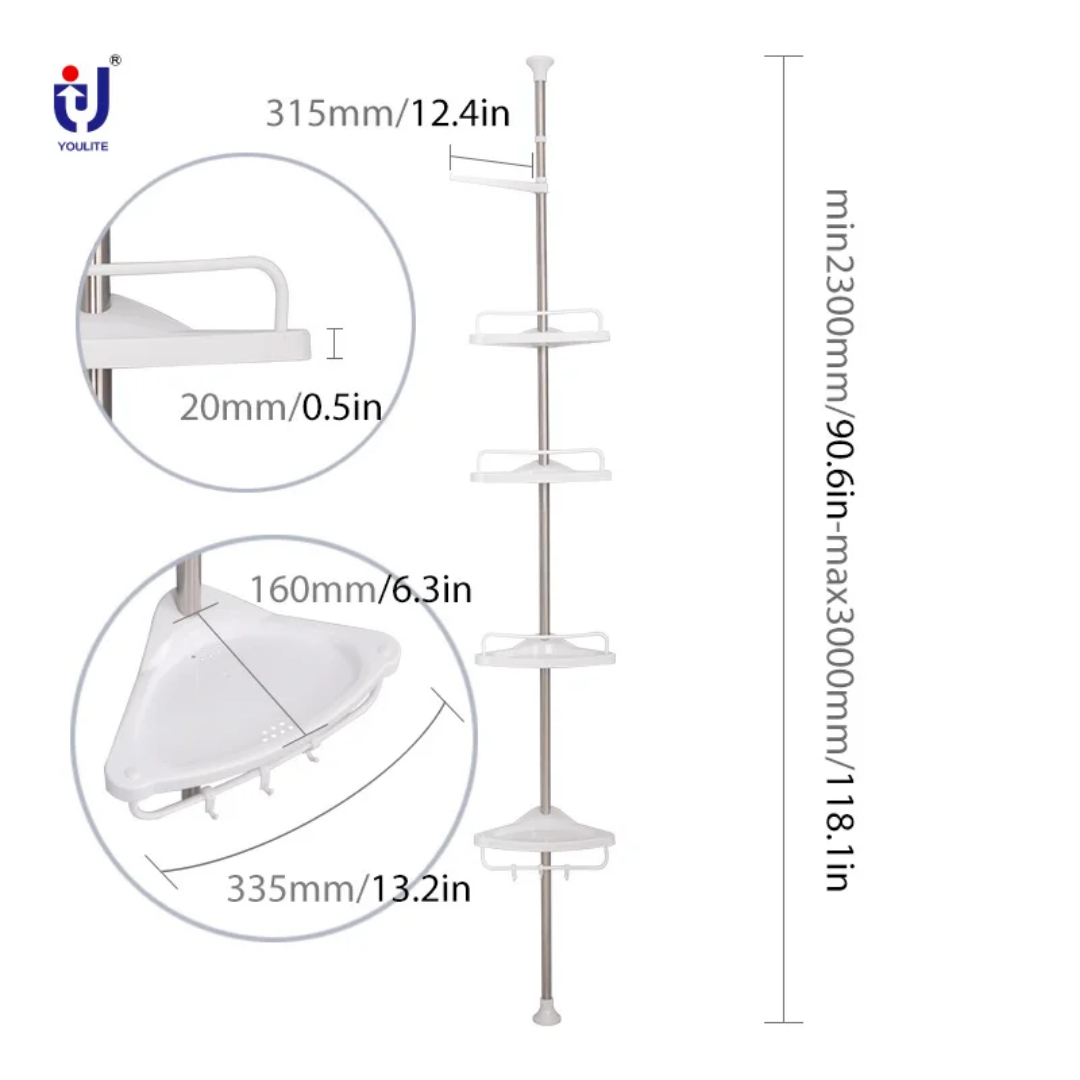 Keep your bathroom essentials organized and within reach with this 4-Tier Telescopic Corner Shelf. This versatile organizer utilizes the often-wasted corner space, extending from floor to ceiling (or bathtub to ceiling) thanks to its adjustable tension pole. It is the perfect solution for busy bathrooms, providing a dedicated spot for shampoos, soaps, and towels while maintaining a clean, clutter-free environment.
