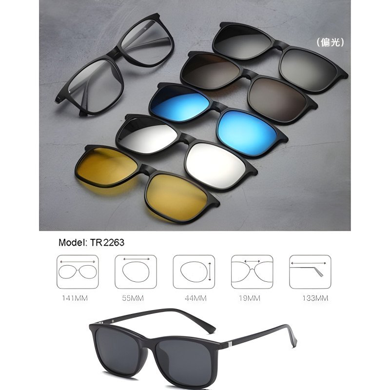 Experience ultimate versatility with the 6-in-1 Magnetic Clip-On Sunglasses Set. This professional eyewear system allows you to switch your look and protection in seconds. The set includes a sturdy optical frame that can be fitted with prescription lenses, along with 5 magnetic clip-on lenses designed for every scenario—from bright sunlight to night driving.