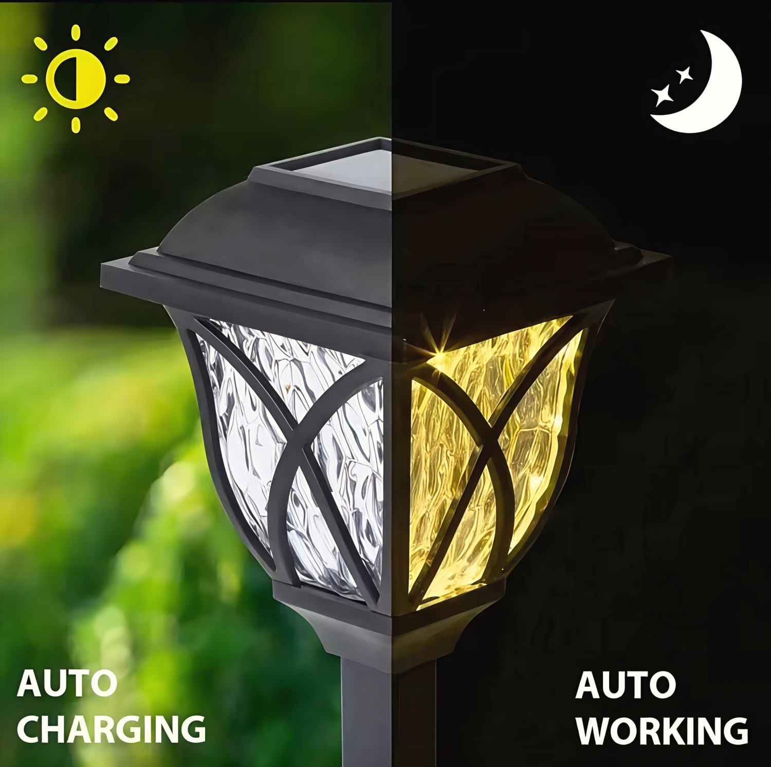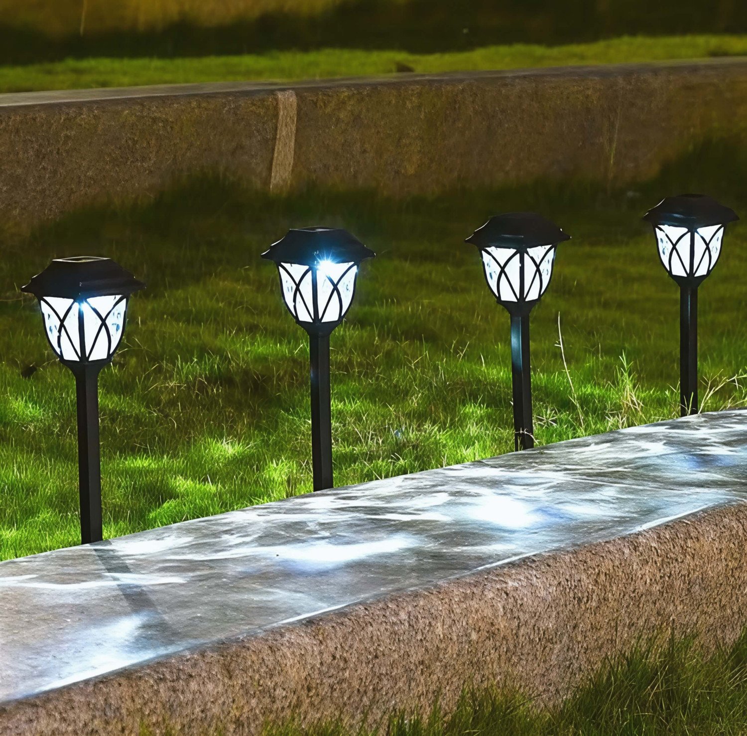 Brighten up your outdoor spaces effortlessly with this premium set of 6 solar-powered garden lights. Designed to combine classic aesthetic appeal with modern energy efficiency, these lights provide a charming glow to your pathways, driveways, or garden beds without the need for complex wiring or electricity costs.