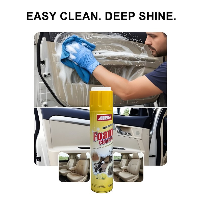 The AIBO Multi-Purpose Foam Cleaner offers an all-in-one solution for maintaining the cleanliness and freshness of diverse surfaces. This deep-action foam formula is engineered to lift dirt and grime from deep within fabrics and hard surfaces without leaving a greasy residue. Equipped with a built-in scrubbing brush on the cap, it simplifies the cleaning process for stubborn stains on car seats, carpets, and household furniture.