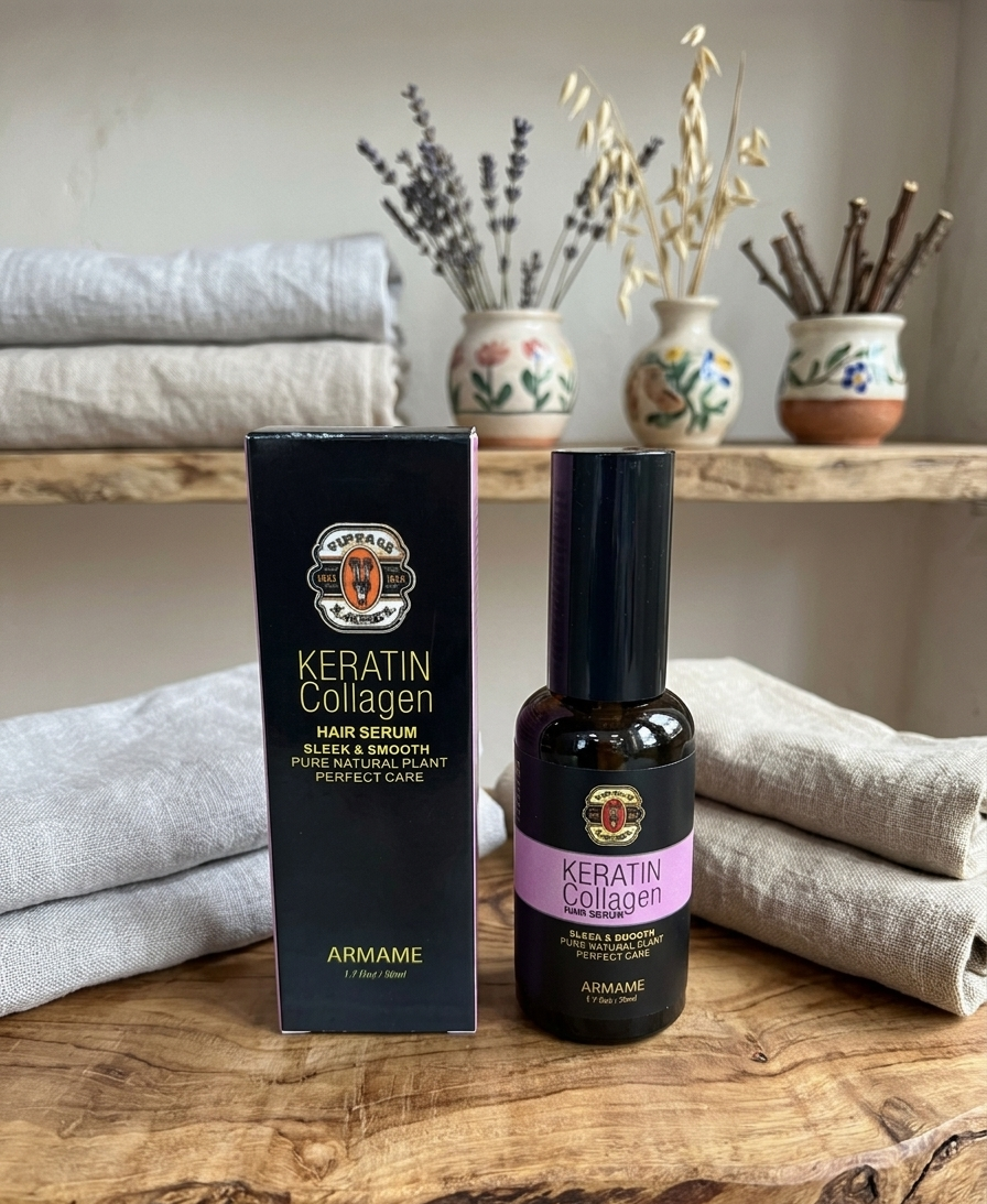 ARMAME Hair Serum is the perfect choice for those seeking a professional hair treatment at home. It combines the strengthening power of keratin with the revitalizing properties of collagen, ensuring your hair stays healthy, manageable, and radiant throughout the day.