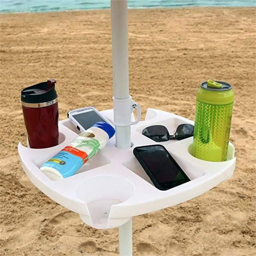 Keep your snacks and drinks off the sand with this practical and durable Beach Umbrella Table. Designed to fit most standard umbrella poles, this tray provides a stable and organized surface for all your seaside essentials. Whether you are at the beach, park, or in your backyard, it ensures your belongings stay clean and within easy reach.