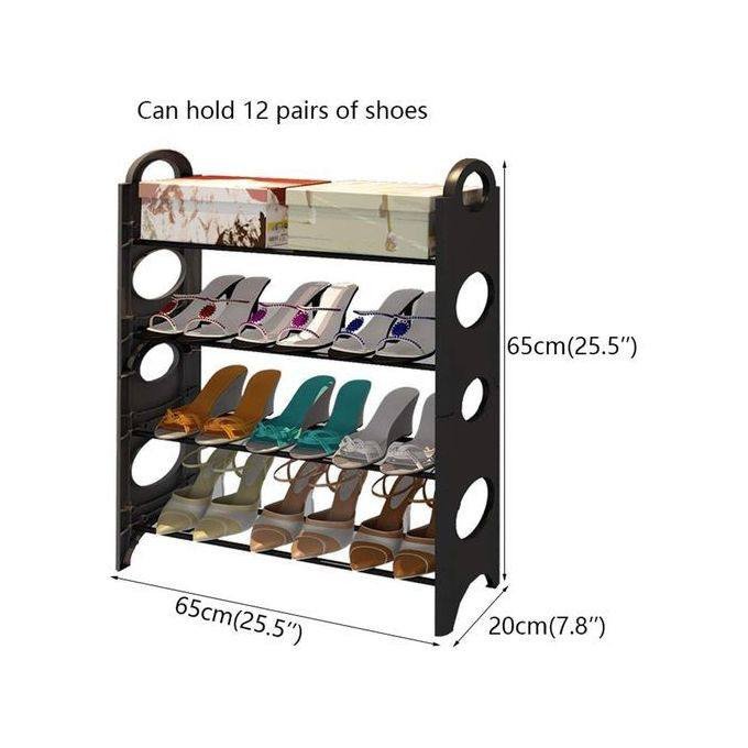 - Large Capacity: Features four spacious tiers that can comfortably hold up to 12 pairs of shoes, including heels, sneakers, and flats.