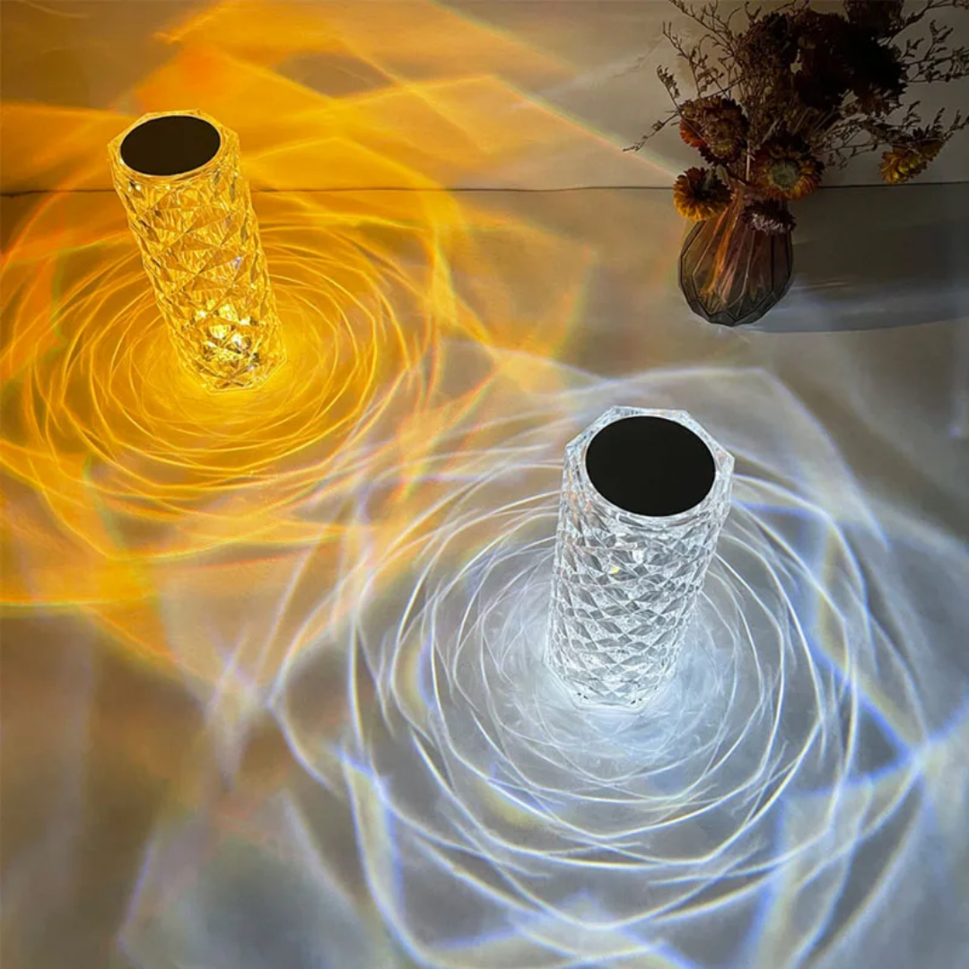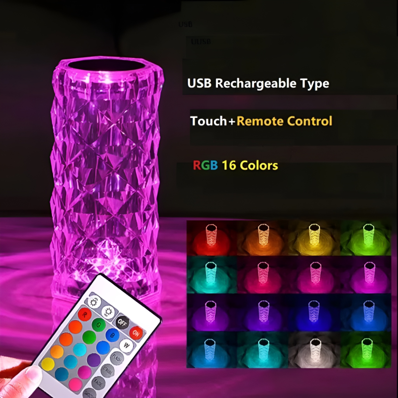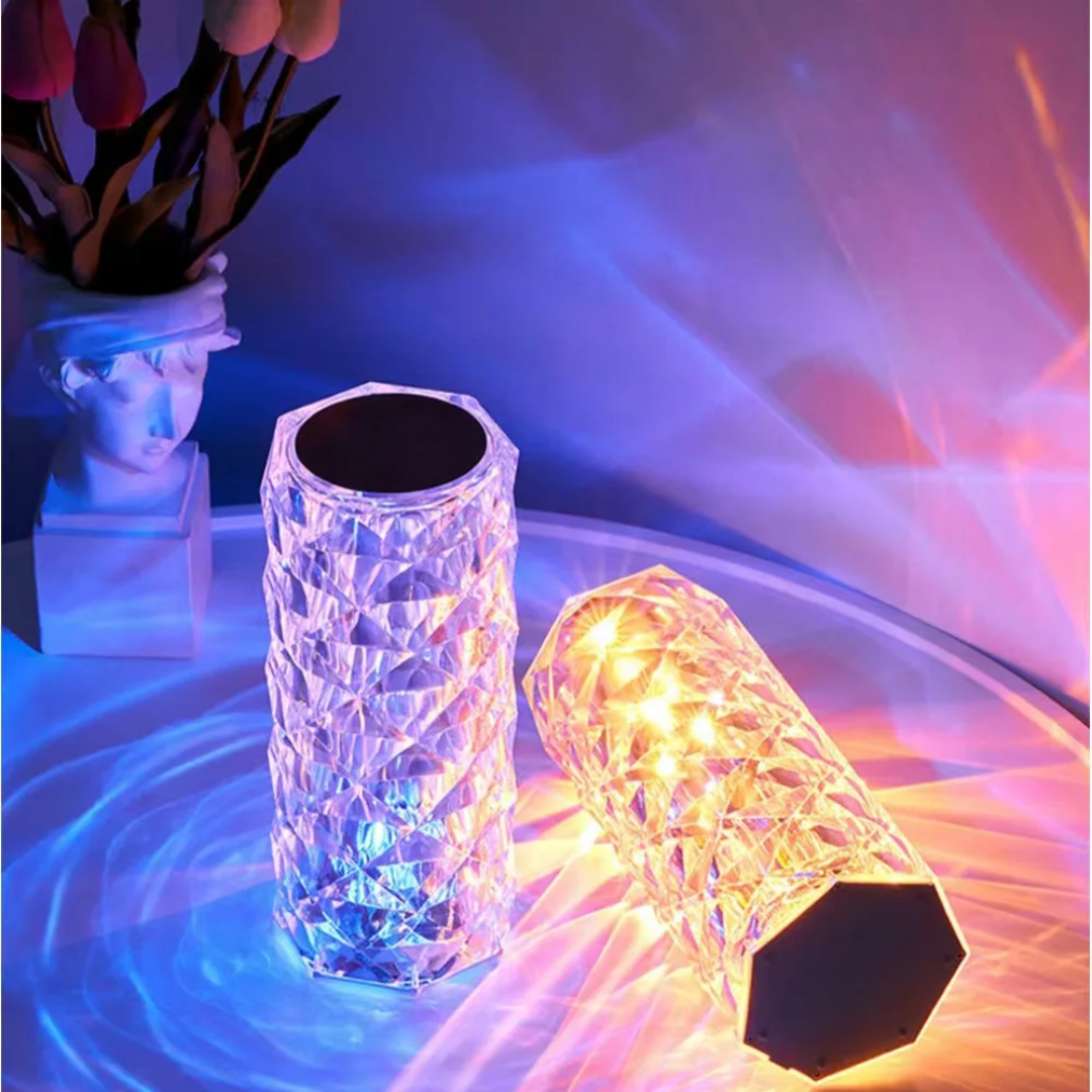 Transform your living space into a sanctuary of elegance with this exquisite Crystal Rose Diamond Table Lamp. Crafted from high-quality transparent acrylic, its unique diamond-cut design creates a stunning visual effect, projecting a beautiful blooming rose pattern on surrounding surfaces. This modern decorative piece combines artistic flair with functional lighting, making it an ideal addition to any contemporary home.
