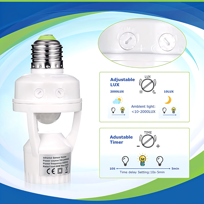 Transform any standard light bulb into a smart, hands-free lighting system with this PIR Motion Sensor Lamp Holder. This clever adapter installs easily between your existing socket and bulb, automatically activating the light when movement is detected and turning it off after a set delay, ensuring you never walk into a dark room again.