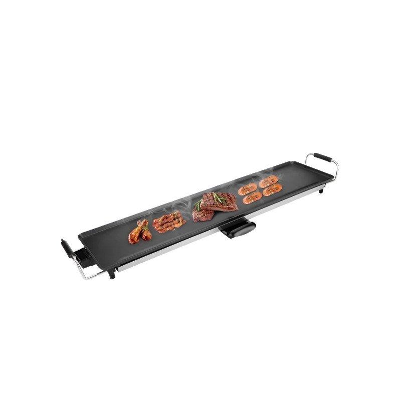 Enjoy a professional grilling experience right in your home with this electric grill. This high-performance appliance is designed to bring the authentic taste of BBQ directly to your dining table, offering a large and flat cooking surface that is perfect for preparing everything from steaks to diverse breakfast meals.