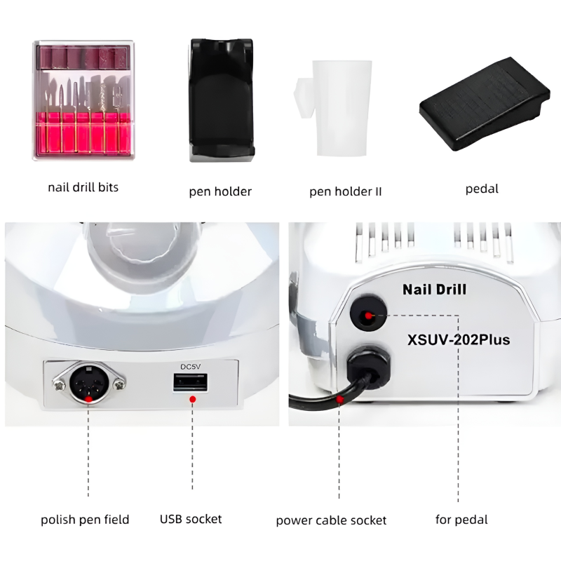 This professional nail drill is a fundamental essential for every nail enthusiast and technician. It eliminates the physical effort of manual filing and the frustration of slow battery-powered home kits. By offering high-speed performance and diverse grinding options in one sleek white unit it ensures your nails look flawless every single day.