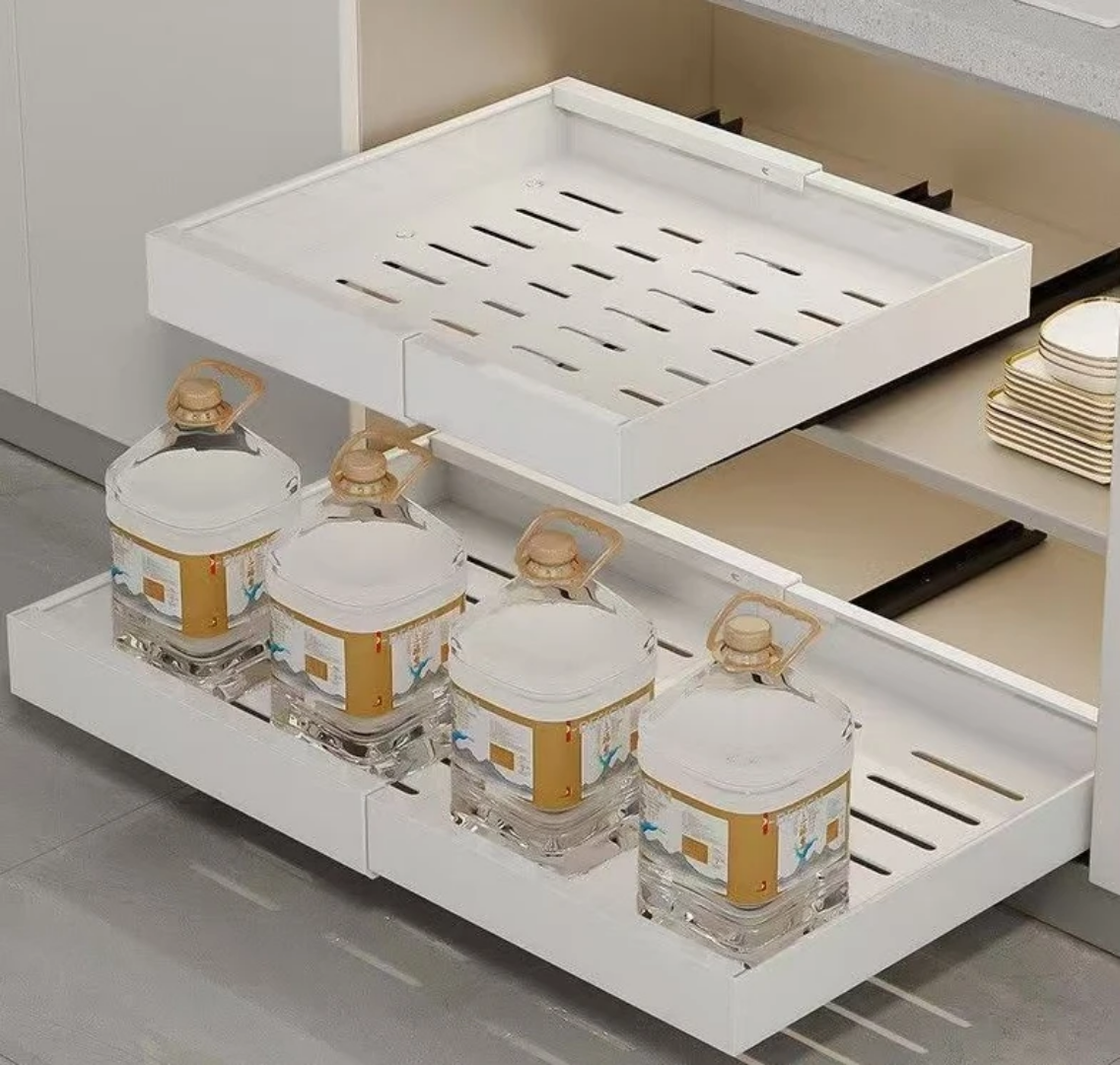 This organizer is the ultimate solution for optimizing vertical and deep storage spaces. It reduces physical strain by bringing the contents of the cabinet to you, protects your items from clutter-related damage, and adds a modern, high-end feel to your kitchen or bathroom shelving.