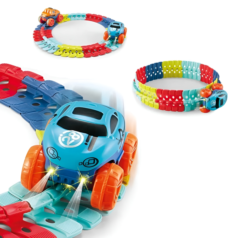 Ignite your child's imagination with this ultimate Flexible DIY Race Track Set. Designed for endless creativity, this set allows young racers to build their own custom speedways with ease. The vibrant, interlocking pieces snap together to create a world of high-speed adventure right in your living room.