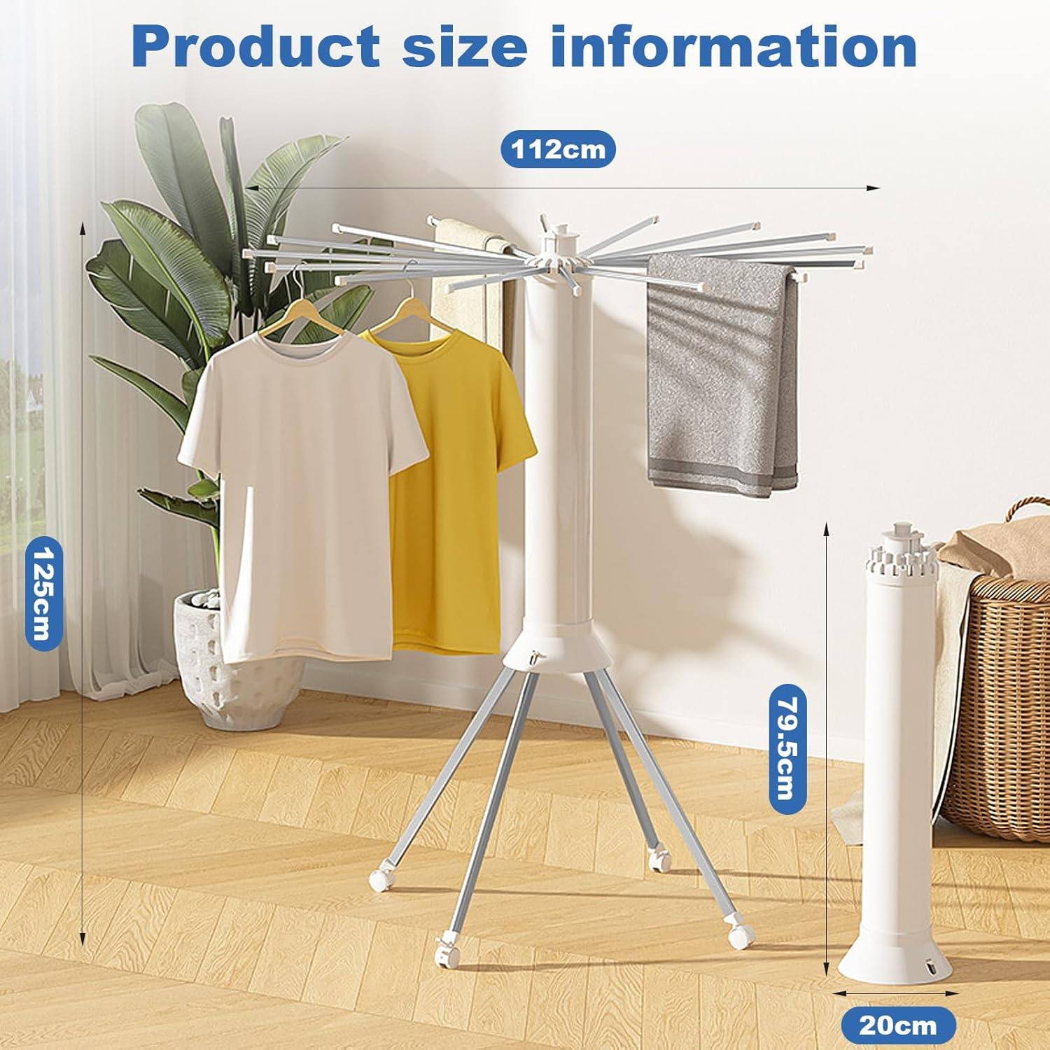 This drying rack is the ultimate solution for households that demand efficiency and durability. Unlike traditional flat racks, its vertical rotary design occupies minimal floor space while providing maximum hanging area. It eliminates the struggle of moving heavy laundry thanks to its mobile wheels and ensures your clothes remain in perfect shape with its anti-bending hangers. Compact, sturdy, and highly mobile, it is the best investment for an organized and efficient laundry day.
