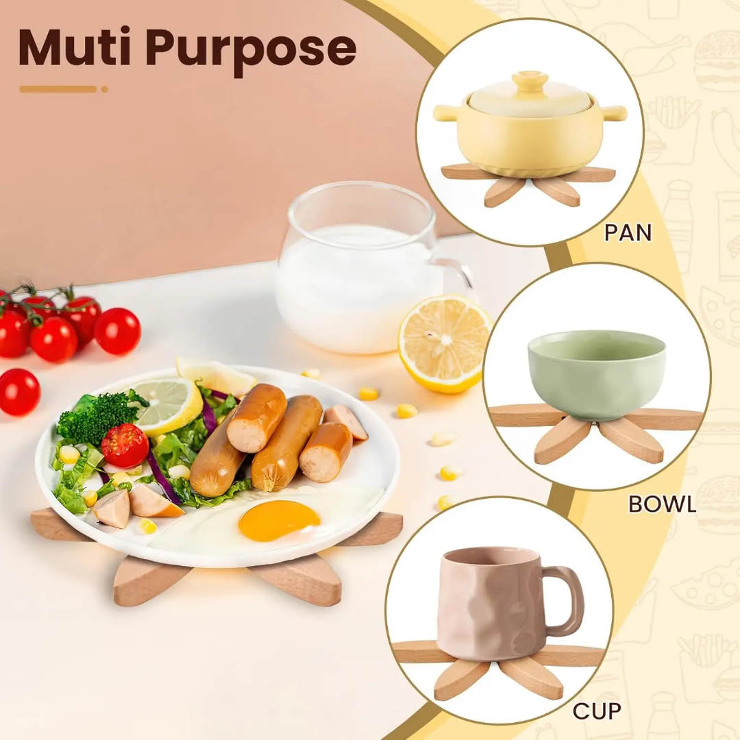 - Anti-Slip and Surface Protection: The smooth wooden finish ensures no scratches on your delicate surfaces while providing a steady base for your cookware.