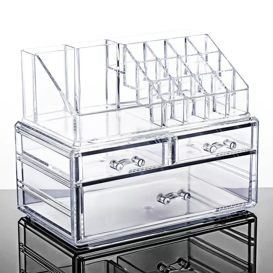 Elevate your vanity and streamline your beauty routine with the Luxury Acrylic Makeup Organizer with Integrated Mirror. This elegant storage solution is meticulously designed to provide a crystal-clear view of your entire collection, allowing you to organize lipsticks, brushes, and skincare products with professional precision and effortless style.