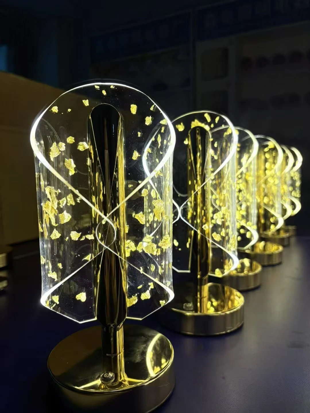 - Artistic Gold-Leaf Design: The transparent crystal-style body is infused with elegant gold flakes, creating a stunning visual effect even when the light is off.