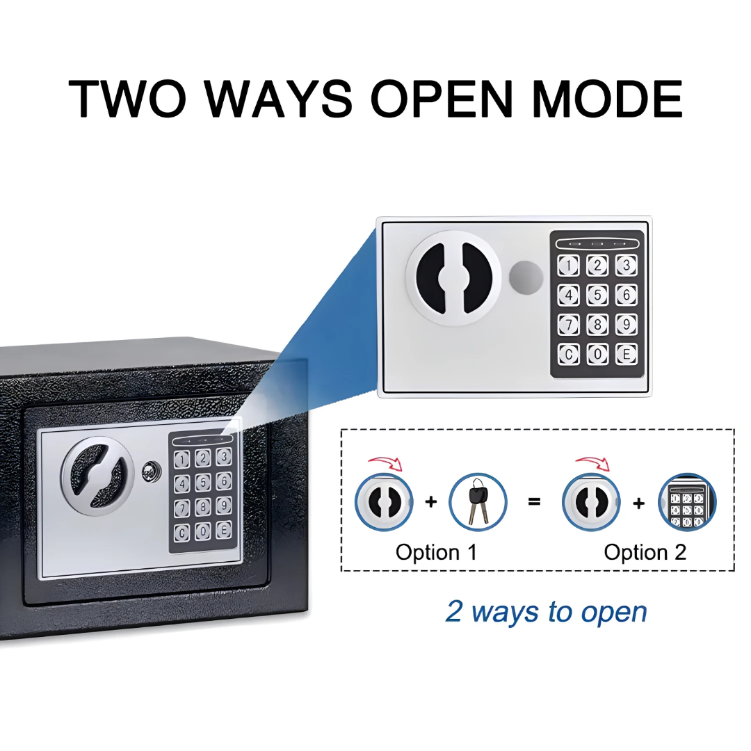 - Locking Mechanism: Digital keypad + Mechanical key override.