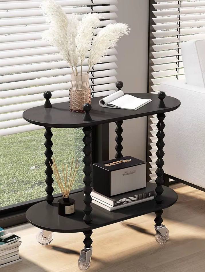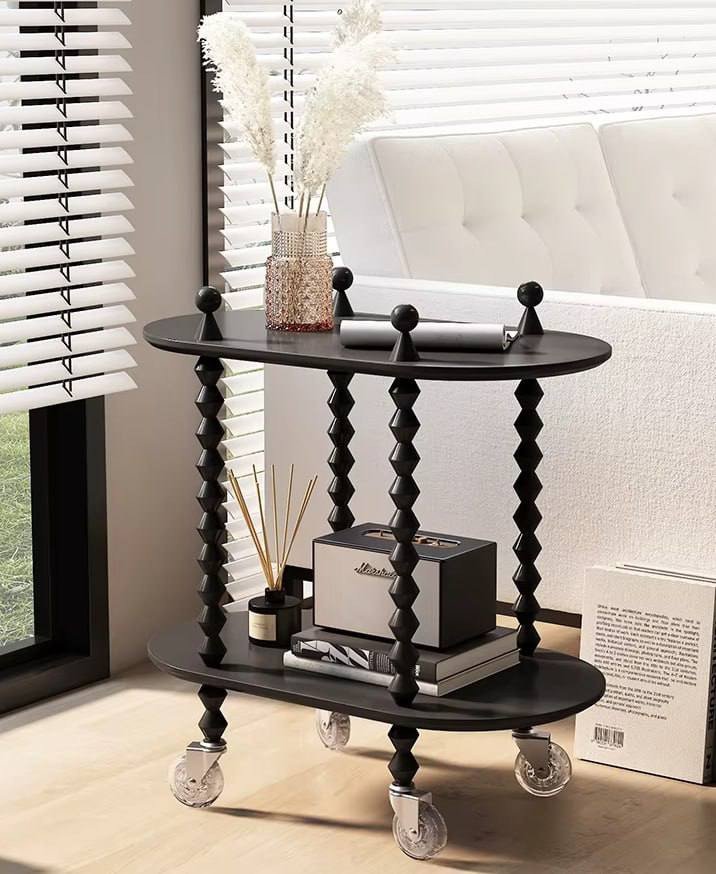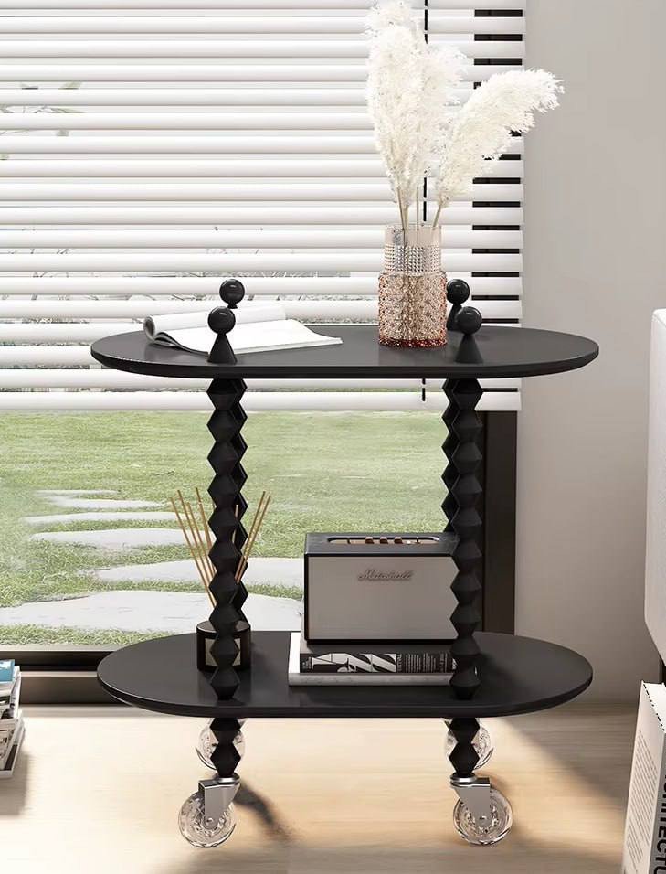 Add a touch of contemporary elegance to your living space with this versatile 2-tier mobile side table. Designed with a unique geometric pillar structure and a sleek matte finish, this cart seamlessly blends artistic flair with everyday functionality. Its compact design makes it a perfect fit for modern apartments and offices, providing extra surface area wherever you need it.