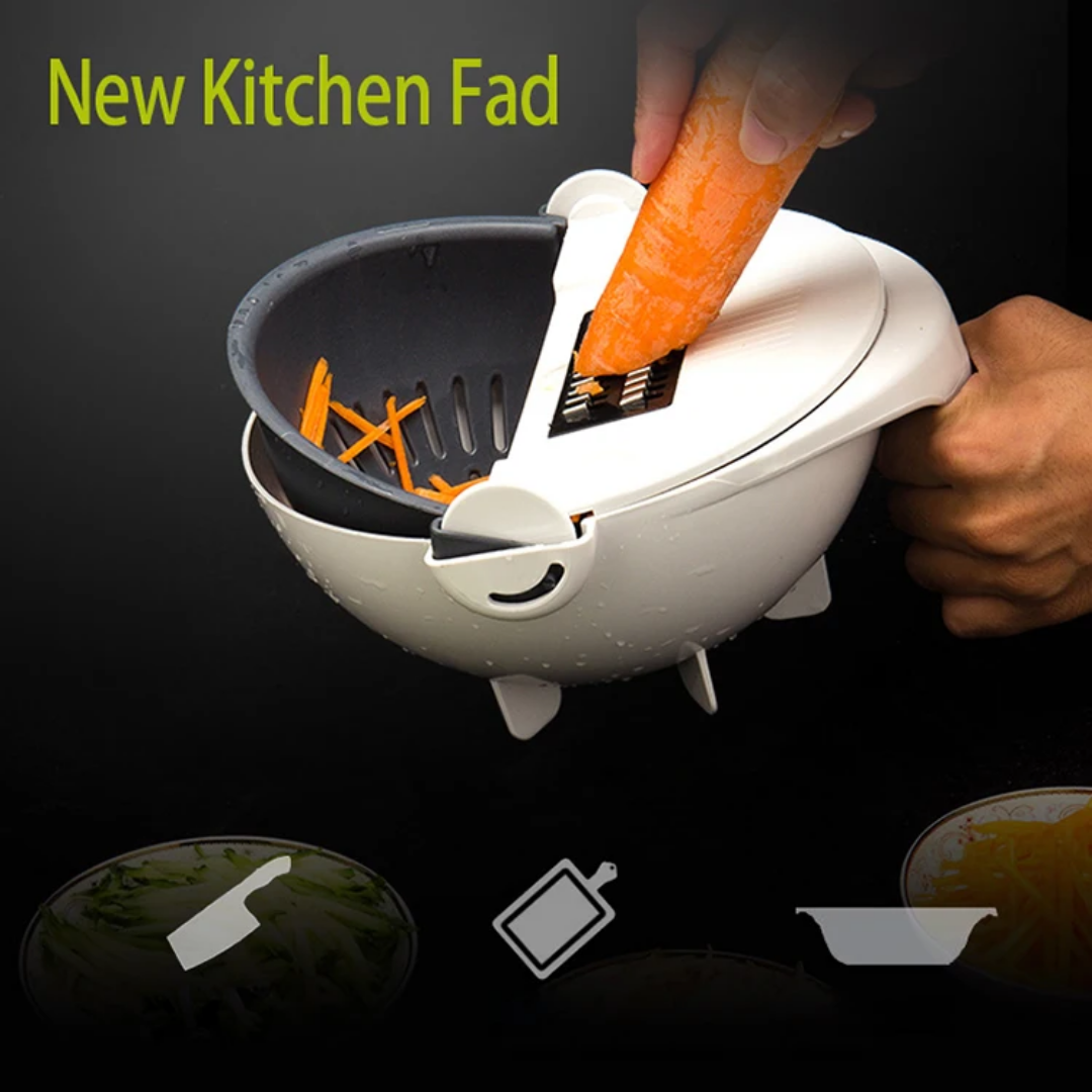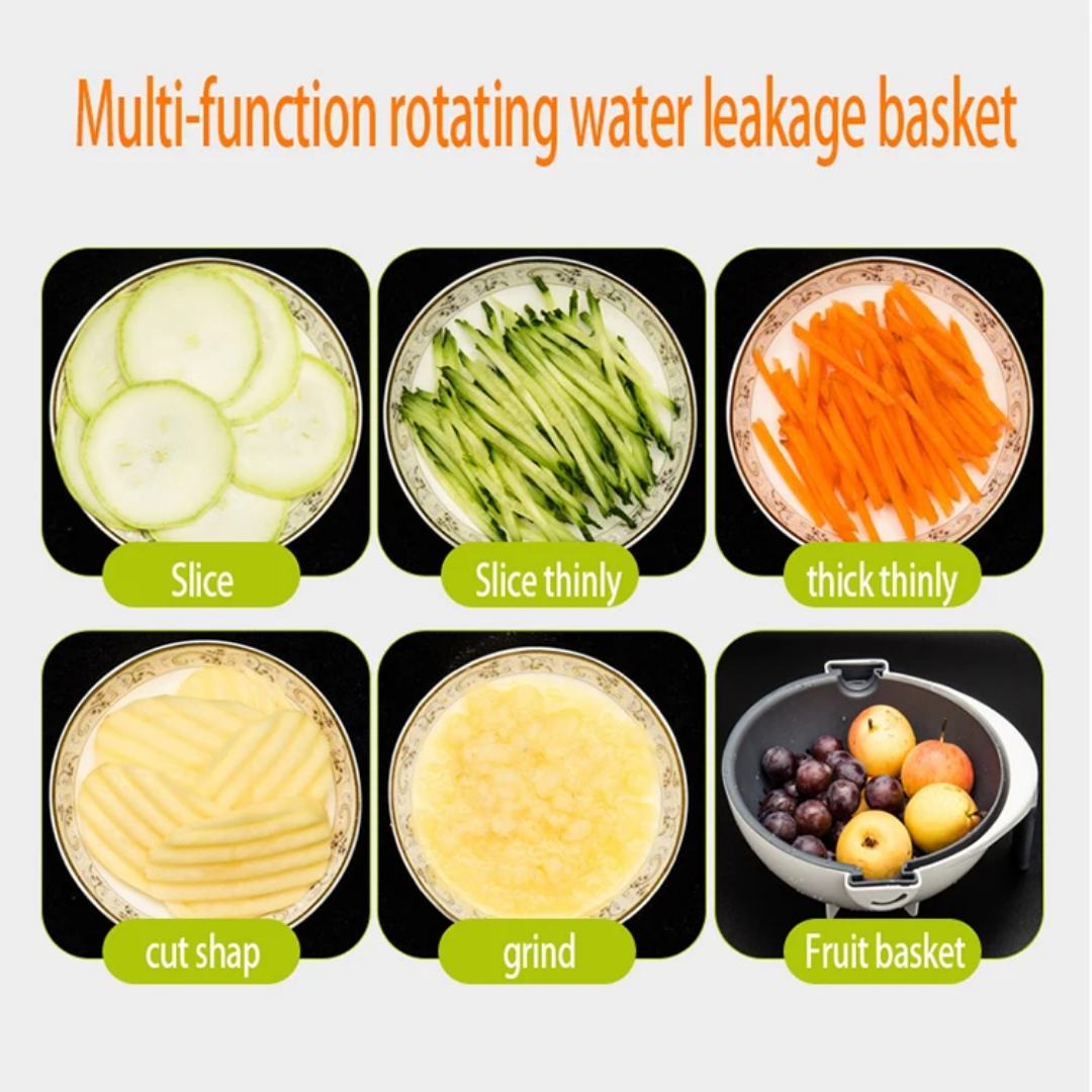 Upgrade your kitchen experience with this innovative Multi-Function Vegetable Cutter. Designed to simplify your meal prep, this versatile tool combines a high-quality slicer, a grater, and a unique rotating drain basket. Whether you are slicing cucumbers, grating carrots, or washing greens, this all-in-one gadget ensures a mess-free and efficient process, keeping your kitchen organized and your hands safe.