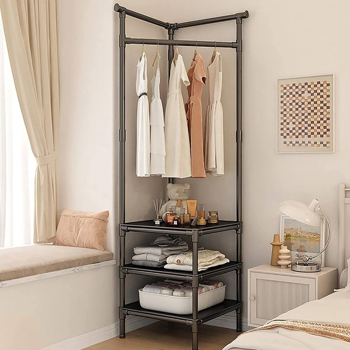 Keep your entryway or bedroom organized and stylish with this all-in-one vertical organizer. This rack is the perfect solution for compact living, providing a dedicated spot for everything from daily coats and bags to your favorite shoes, all in one sturdy, space-efficient piece.