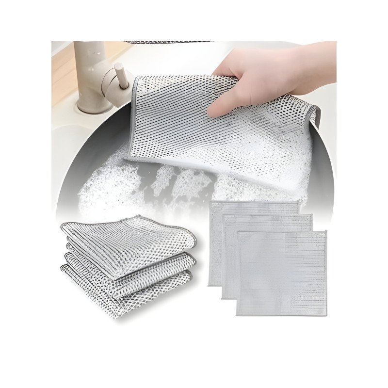 Elevate your kitchen cleaning routine with these innovative Silver Wire Rags. Designed to replace traditional steel wool, these rags offer a powerful yet gentle scrubbing action that removes tough stains without damaging your precious cookware. Whether it is burnt-on food or stubborn grease, these rags make cleaning effortless while being easy to rinse and reuse.