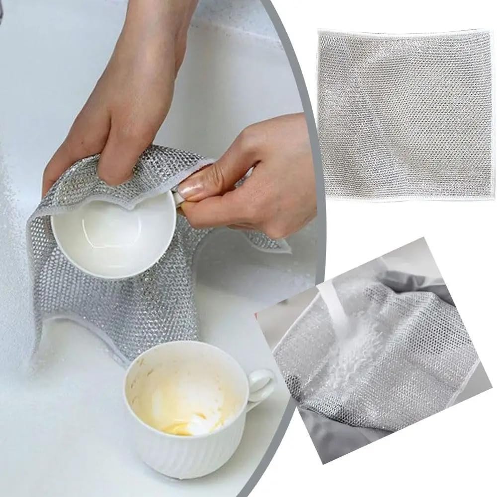 Upgrade your kitchen cleaning routine with the innovative Silver Wire Cloth. This modern cleaning solution combines the strength of traditional steel wool with the softness of a microfiber cloth. Designed with a unique reinforced mesh, it effectively tackles stubborn grease and burnt-on food while remaining gentle enough to protect your delicate cookware from scratches.
