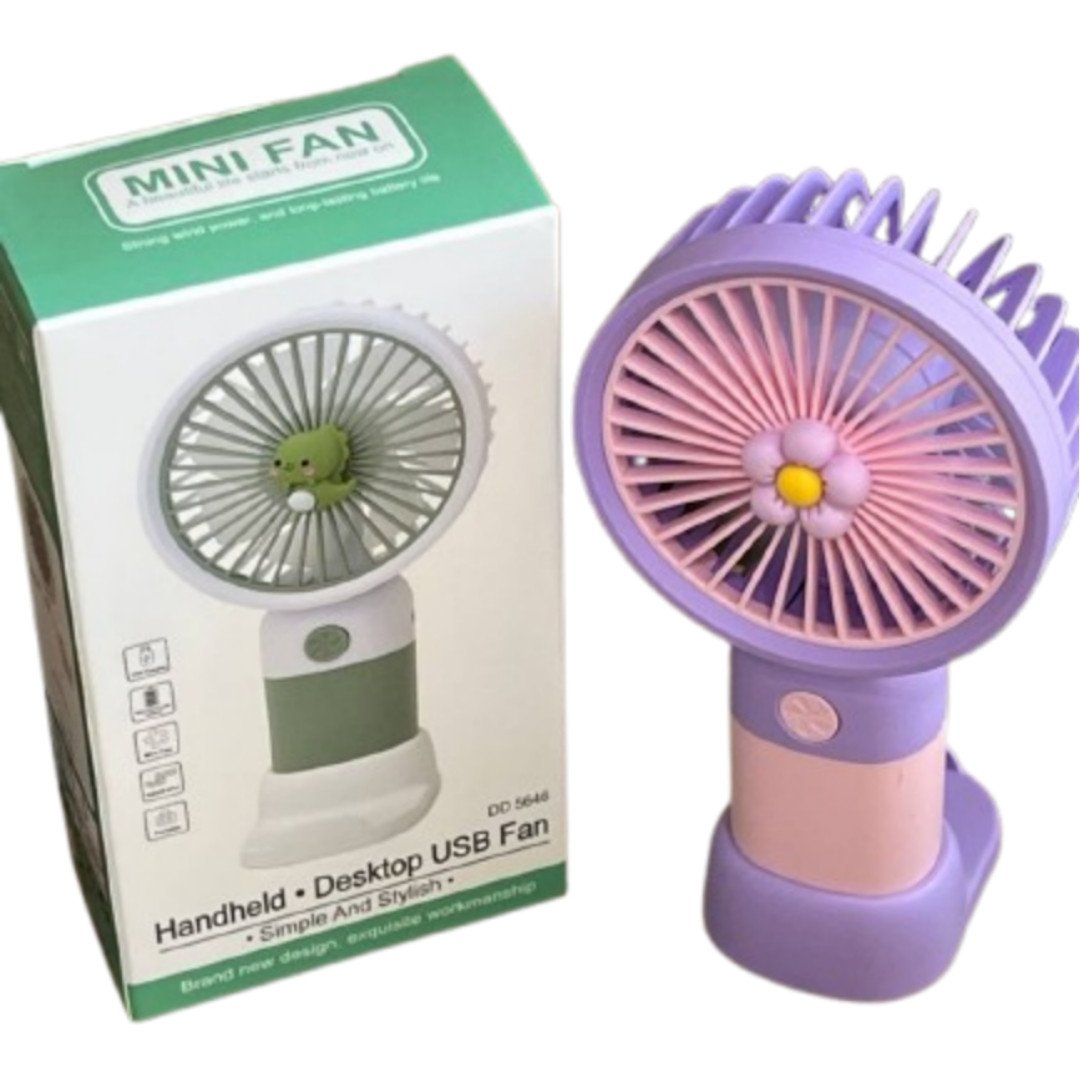 Beat the heat wherever you go with this versatile 2-in-1 mini fan. Designed for both style and functionality, this compact device serves as a powerful handheld cooler for outdoor use and a stable desktop fan for your workspace. Its charming design and vibrant colors make it a delightful accessory for any setting.