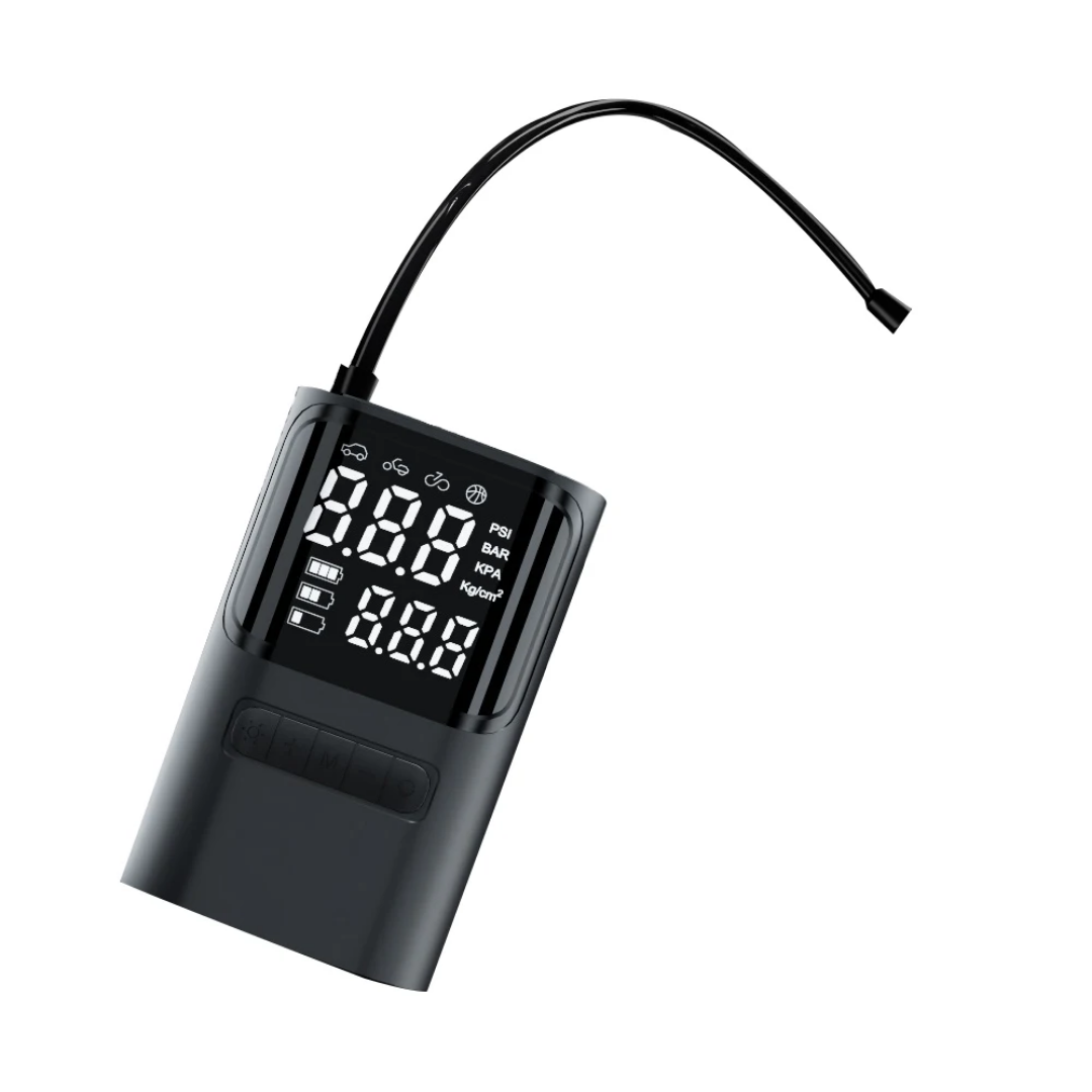 Ensure your tires are always at the perfect pressure with this Portable Electric Air Compressor. This smart, compact device is designed for ultimate versatility, capable of inflating car tires, motorcycles, bicycles, and sports equipment like basketballs with ease. Featuring a high-precision digital display and an integrated LED light, it provides a reliable solution for roadside emergencies or routine maintenance, anytime and anywhere.