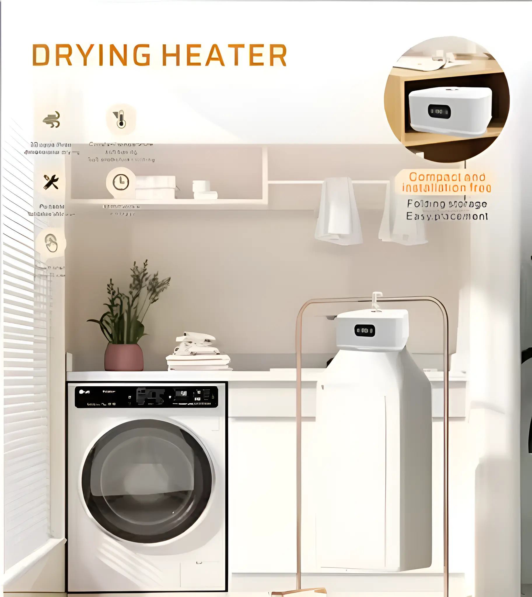 Experience the convenience of laundry day anywhere with the Portable Electric Clothes Drying Heater. This innovative device uses surrounding warm air technology to dry your clothes quickly and gently. Its compact, hanging design makes it perfect for small apartments, dorm rooms, or travel, ensuring your garments are soft, warm, and ready to wear in no time.
