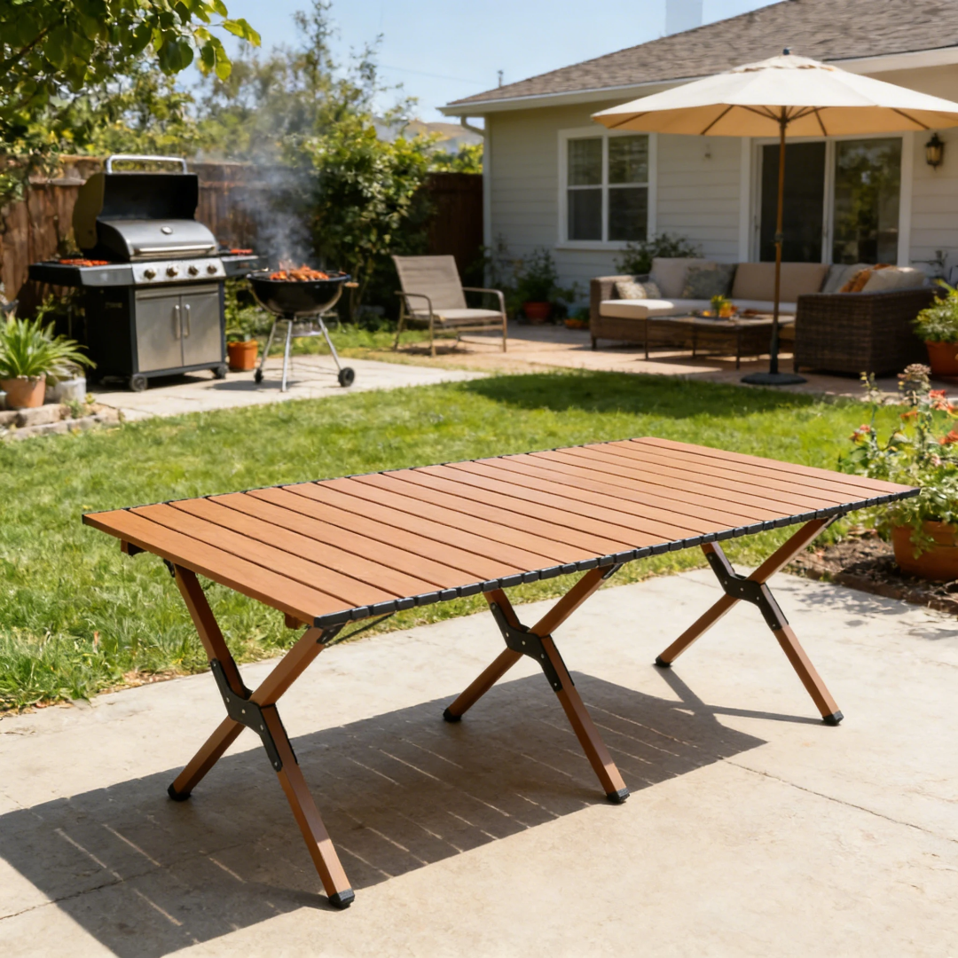 This table is the perfect blend of portability and functionality. Unlike bulky traditional tables, it fits easily into a car trunk while providing a full-sized dining experience once unfolded. It is an essential companion for anyone looking to upgrade their camping, tailgating, or backyard BBQ setup with a professional and stylish touch.