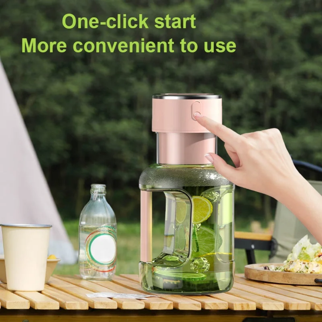Experience the freedom of fresh nutrition anywhere with this Portable Electric Juicer. Designed as a stylish sport bottle with a built-in handle, this high-performance blender allows you to create delicious smoothies and fresh juices on the go, whether you are at the gym, office, or camping in the wild.