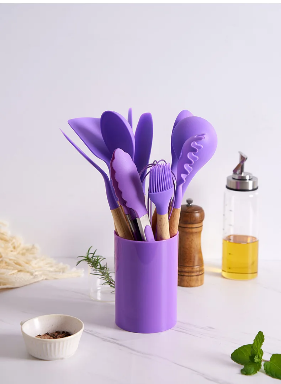 Elevate your cooking experience with this stylish and functional silicone utensils set. Designed for modern kitchens, this multi-piece set provides all the essential tools you need for stirring, flipping, and serving, while adding a vibrant pop of color to your countertop.