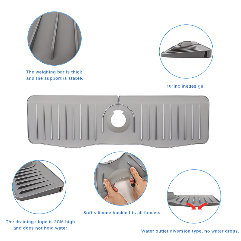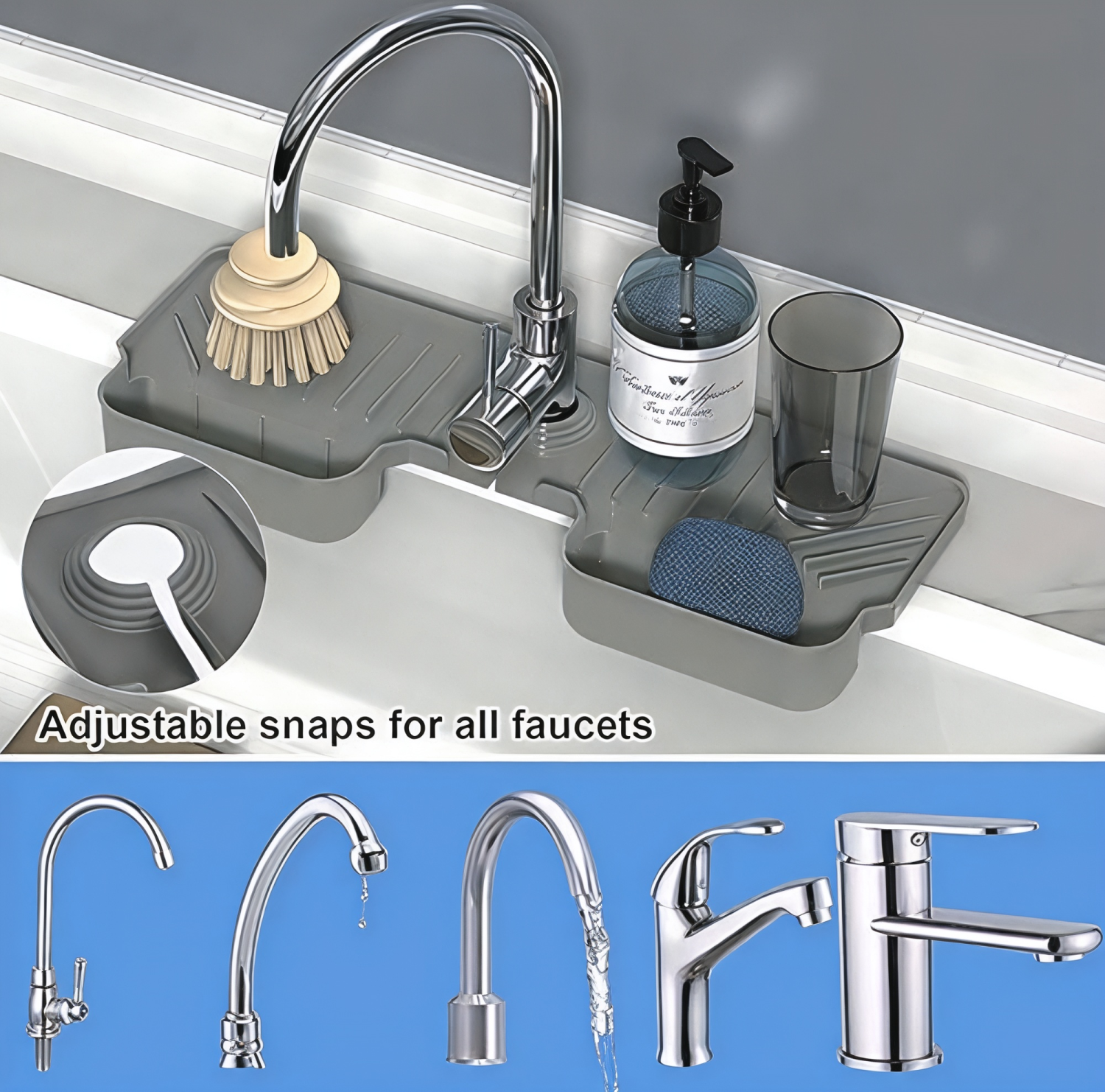 Keep your sink area spotless and dry with this innovative Silicone Faucet Drain Pad. Designed to fit around the base of your faucet, it acts as a smart drainage system that directs water splashes back into the sink, preventing messy puddles and limescale buildup on your countertops.
