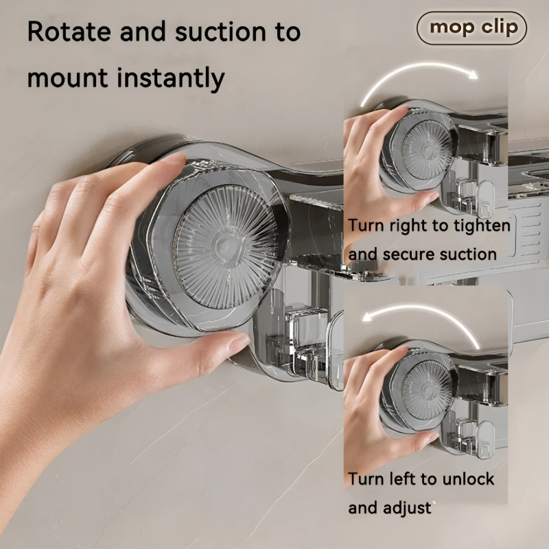 Transform your home organization with the Suction Mop Clip Transparent Wall Organizer with Hooks. This sleek, transparent unit utilizes advanced suction technology to provide a stable, heavy-duty hold on smooth surfaces without the need for tools or screws. Its "all-over-the-house" design makes it the ideal companion for your kitchen, bathroom, or laundry room, keeping your cleaning tools tidy and easily accessible.