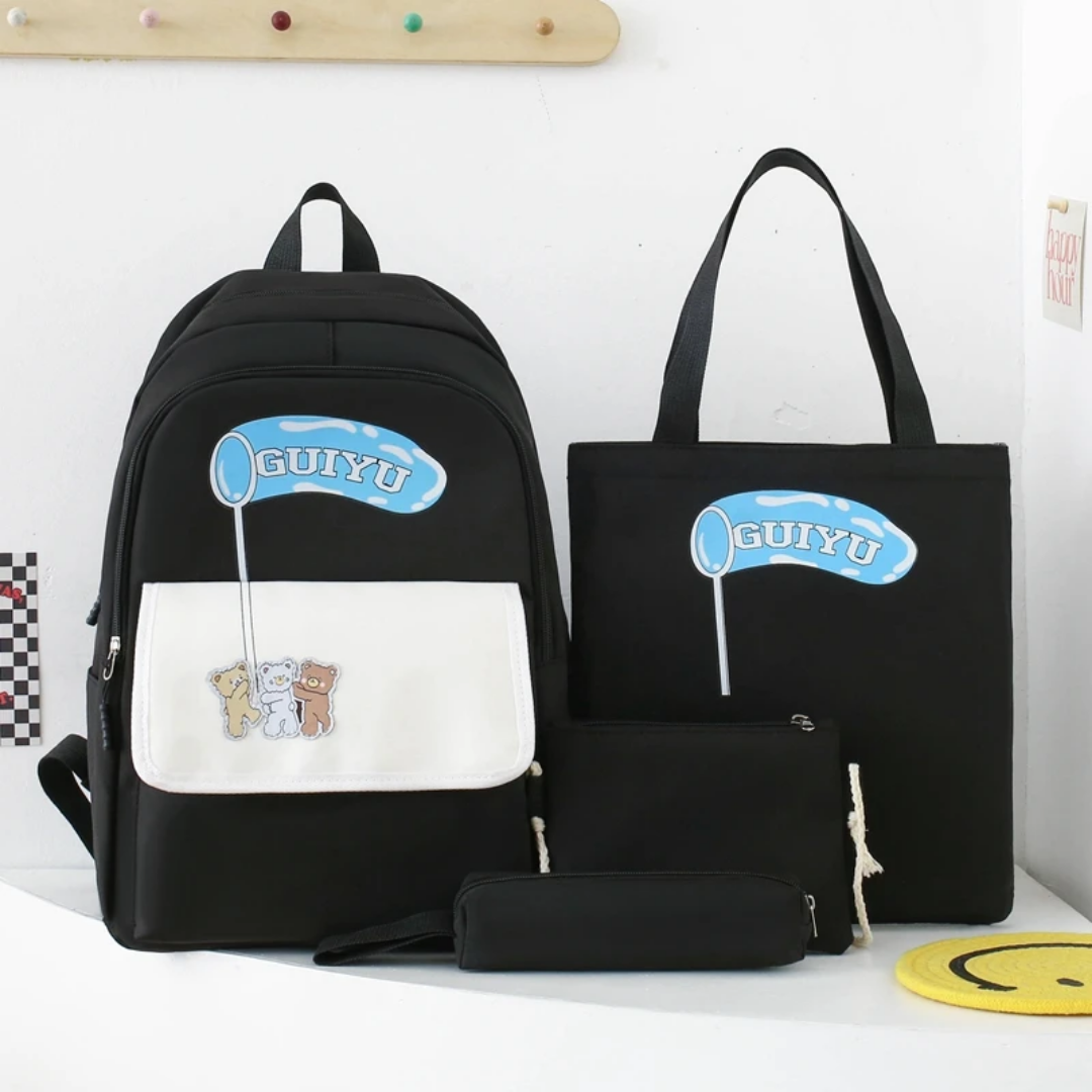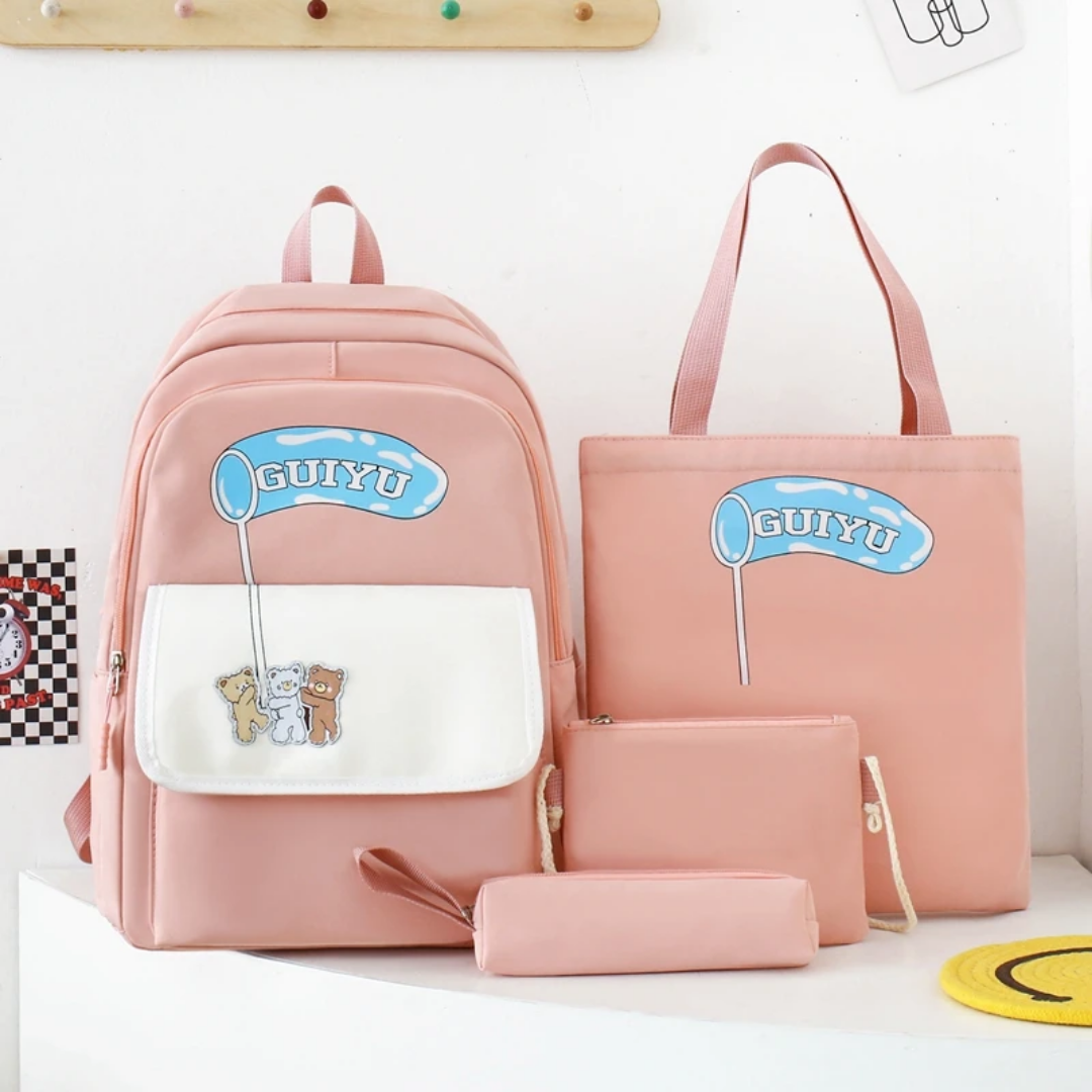 Upgrade your school style with this versatile 4-in-1 school bag set. Designed for students who value both fashion and functionality, this coordinated set features a trendy aesthetic with adorable bear graphics. Whether you are heading to class, the library, or a weekend outing, this set provides the perfect carrying solution for all your essentials while keeping you organized and stylish.