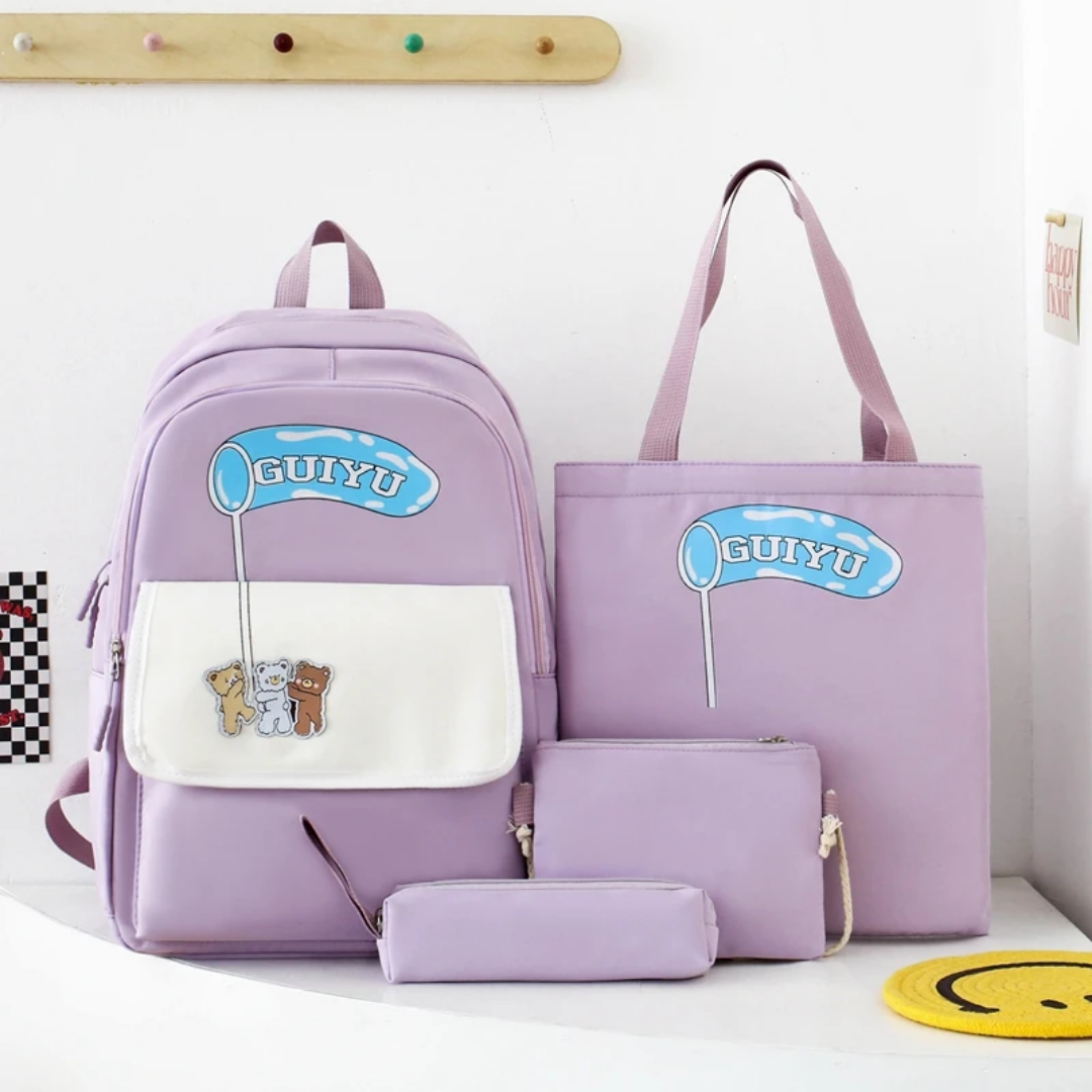 Choosing this 4-in-1 set means you get a complete, matching look for one price. It eliminates the need to buy separate bags for different activities, offering a coordinated and organized way to handle school life. Its durable construction and charming design make it an ideal gift for students looking to express their personality.