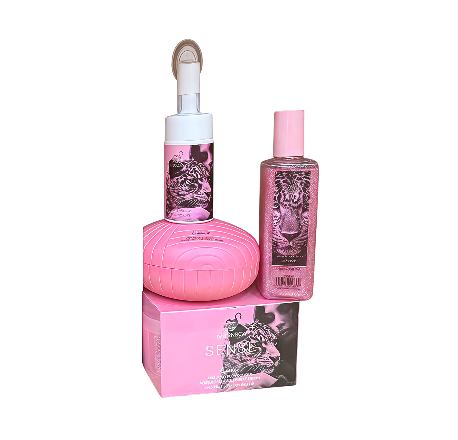 Experience the pinnacle of pampering with this comprehensive beauty collection designed for those who seek elegance and long-lasting fragrance. This curated set combines skin-loving ingredients with a captivating scent profile, all wrapped in a bold leopard-print aesthetic. From refreshing showers to final fragrance touches, this collection offers a complete sensory journey for the modern woman.