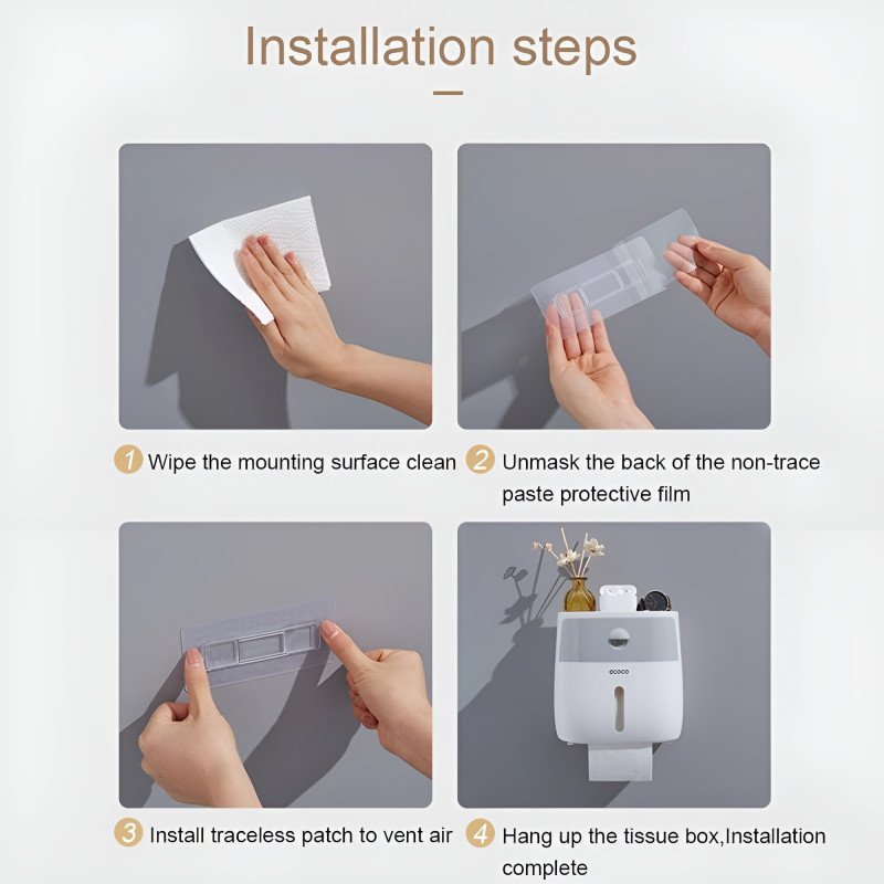 The Tissue Box is more than just a holder; it's a smart organization tool that saves space and enhances your bathroom's look. Its no-drill installation is perfect for renters, and its waterproof build ensures you never have to deal with soggy toilet paper again. It’s a durable, hygienic, and stylish solution for a more organized home.